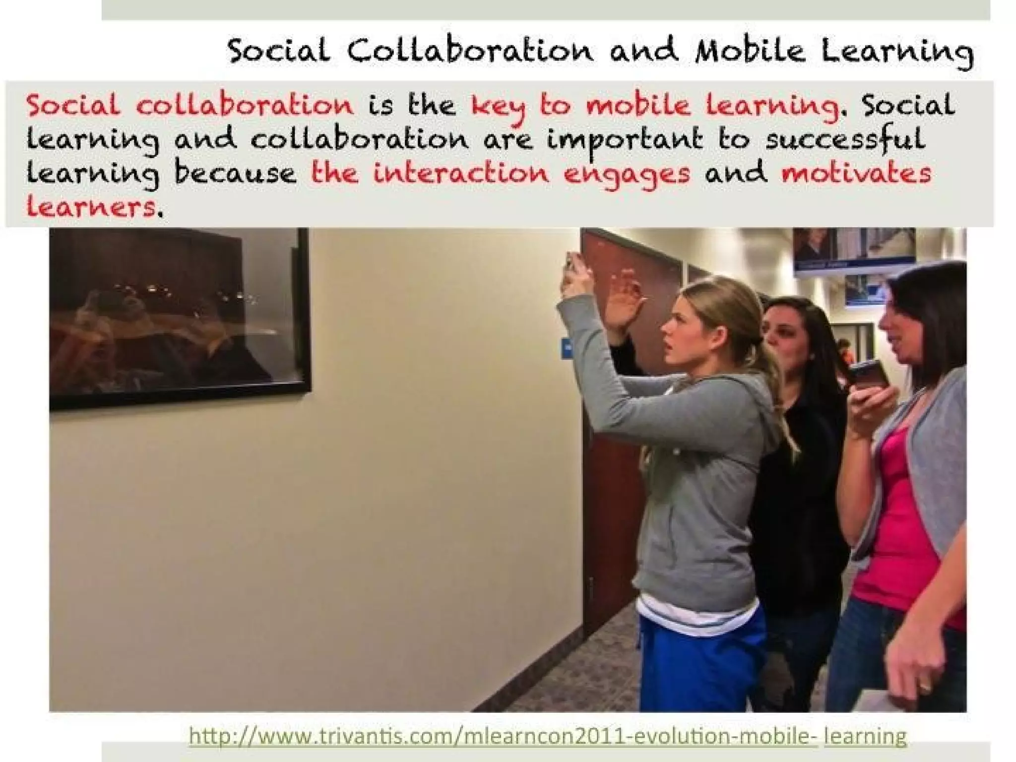This document contains a collection of links related to mobile learning and building online communities. It discusses how mobile learning activities should be designed based on student ownership and use patterns of mobile devices. Research shows that activities should not require apps and should allow for transfer of learning outside the classroom. The document also references studies about teens' use of technology and smartphones, as well as implications for designing mobile learning experiences.