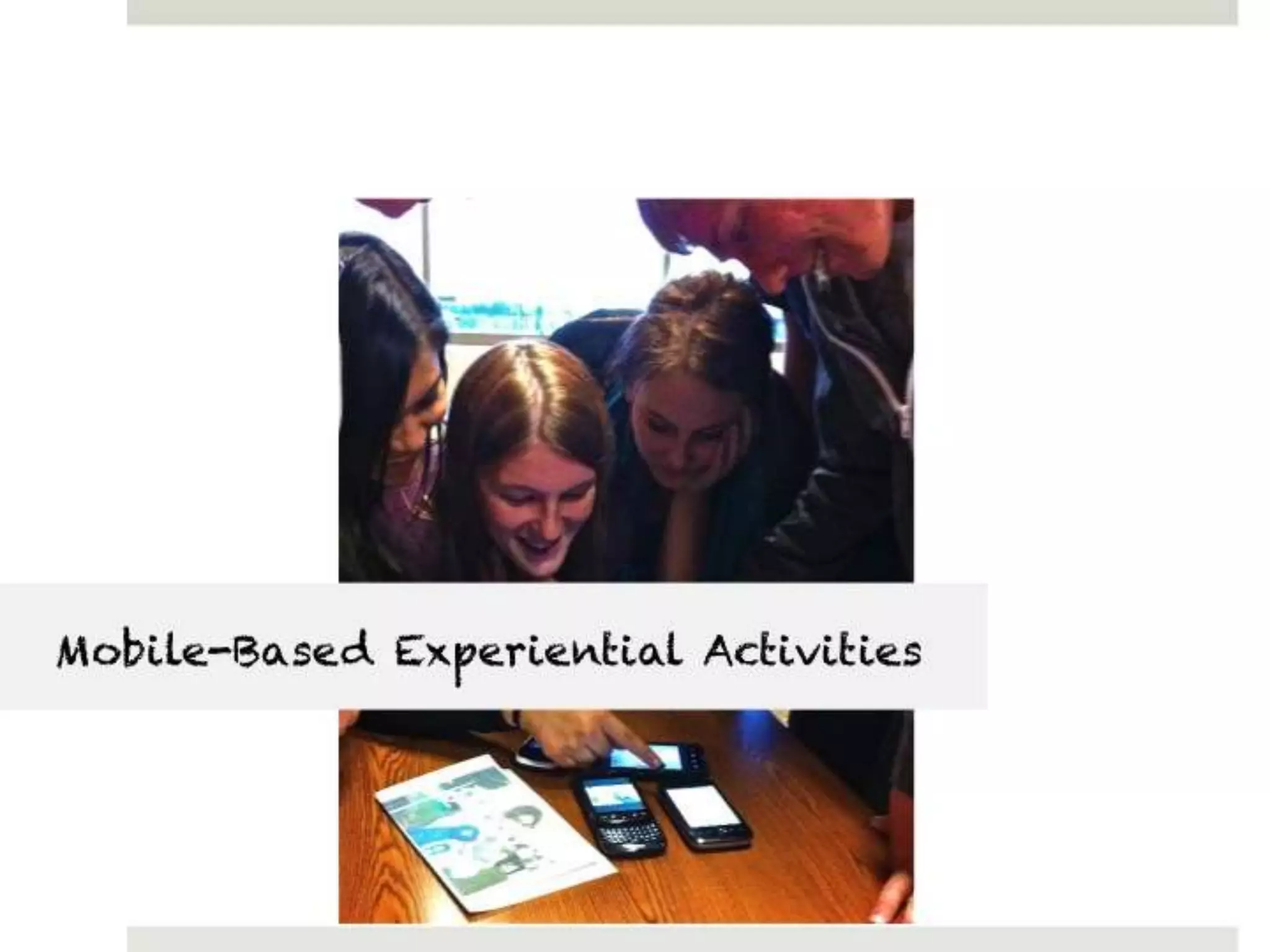 The document outlines various online learning activities and community-building strategies, referencing multiple resources and studies, including the impact of mobile technology on education. It discusses the implications of research on teaching methods and emphasizes the importance of fostering communication and values among learners. Additionally, it highlights the challenges of an 'app gap' and includes links to related materials and tools for creating engaging learning experiences.