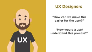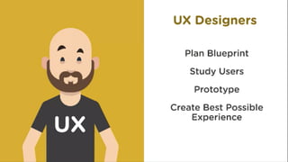 This document discusses user experience (UX) design and why understanding users is important. It covers defining personas and empathy maps to represent different types of users. It also discusses determining goals for a product by combining user goals with business goals. Finally, it explains how to plan the user journey through a user flow diagram that maps the optimal steps and path a user would take to achieve their goals on a product.
