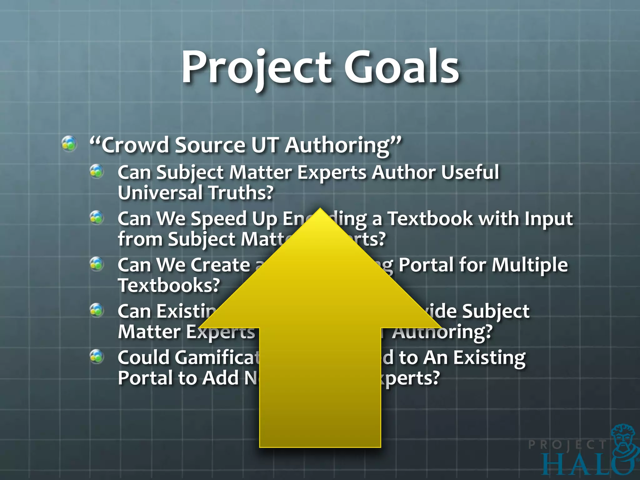 The document outlines the objectives of a user experience review for the AuraWiki project, focusing on the authoring of 'universal truths' (UTs) from textbook sentences by subject matter experts. It details the training and process for creating UTs, emphasizing the importance of context-independent, precise statements that convey single facts. The document also includes evaluation methods for the functionality of the application and feedback from users to enhance the authoring process.