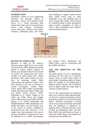 This study investigates the uplift capacity of square horizontal anchors in cohesionless soil through experimental and analytical methods. It focuses on factors like embedment depth, relative density, and anchor plate size, providing insights into the load-displacement relationship and breakout factors. The findings show that uplift capacity varies significantly with soil conditions and that empirical formulations yield differing results compared to laboratory tests.