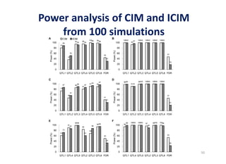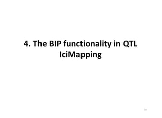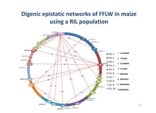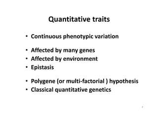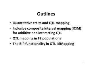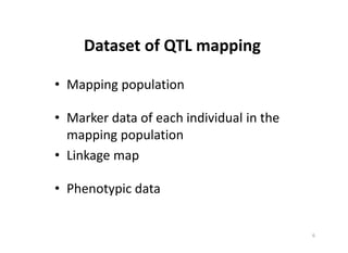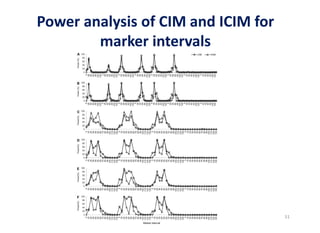This document discusses genetic linkage analysis and map construction. It begins by presenting Mendel's experiments with plant hybrids and rediscovery of his work in 1900. It then discusses estimation of recombination frequency using different genetic populations like backcross, doubled haploid, recombinant inbred lines and describes maximum likelihood estimation. The document also discusses significance tests for linkage and examples of linkage analysis in different populations like F2, BC1F2. It describes expected genotypic frequencies and effect of distortion. Finally, it mentions three-point analysis and construction of linkage maps.