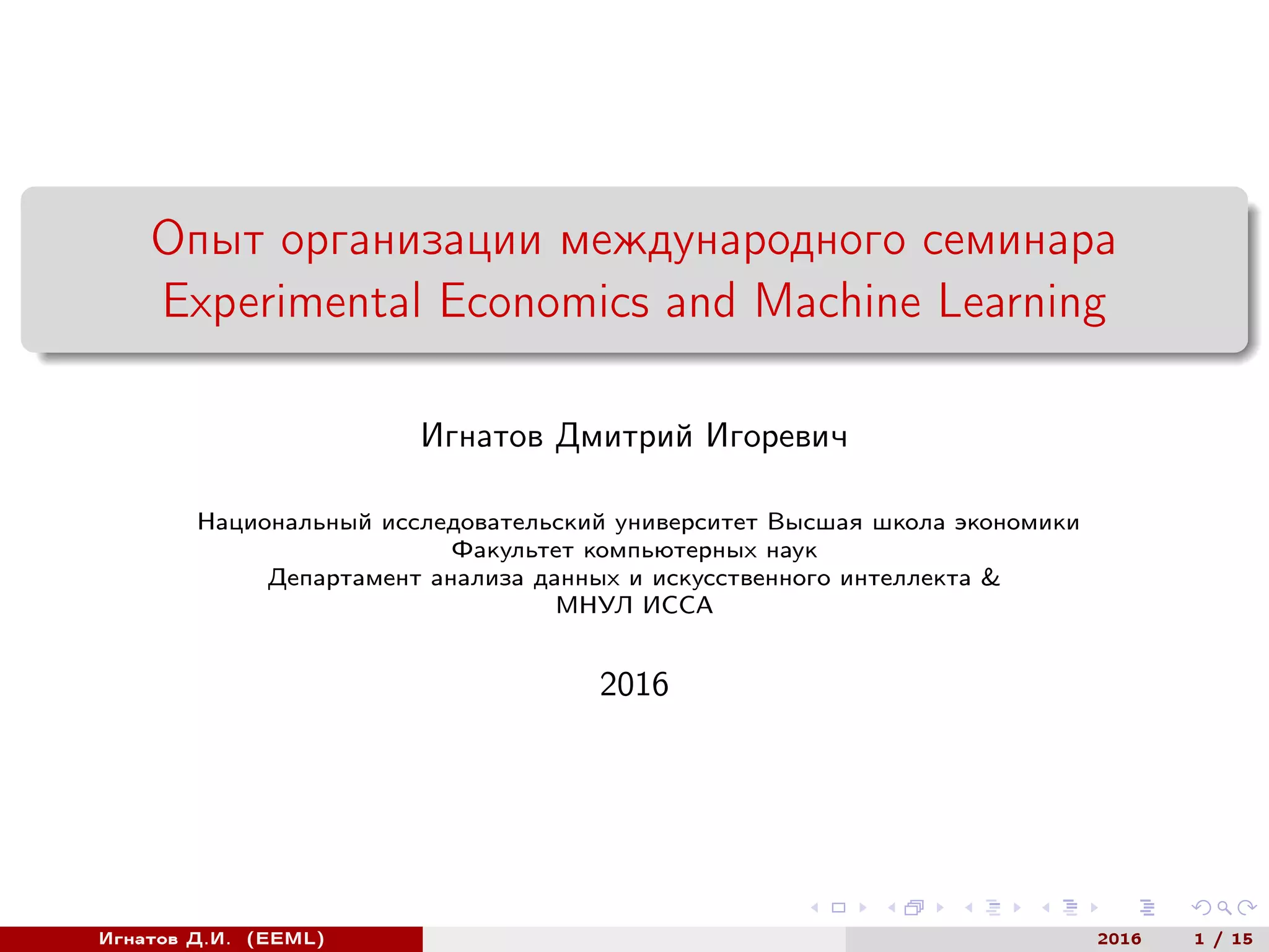 The document outlines the organization and proceedings of the EEML workshop on experimental economics and machine learning, held in Moscow in 2016. It discusses the shift from traditional empirical approaches to data-driven models and highlights collaborations between computer scientists and economists. The content includes various contributions, notable figures' thoughts on machine learning in economics, and references to related works and previous workshops.