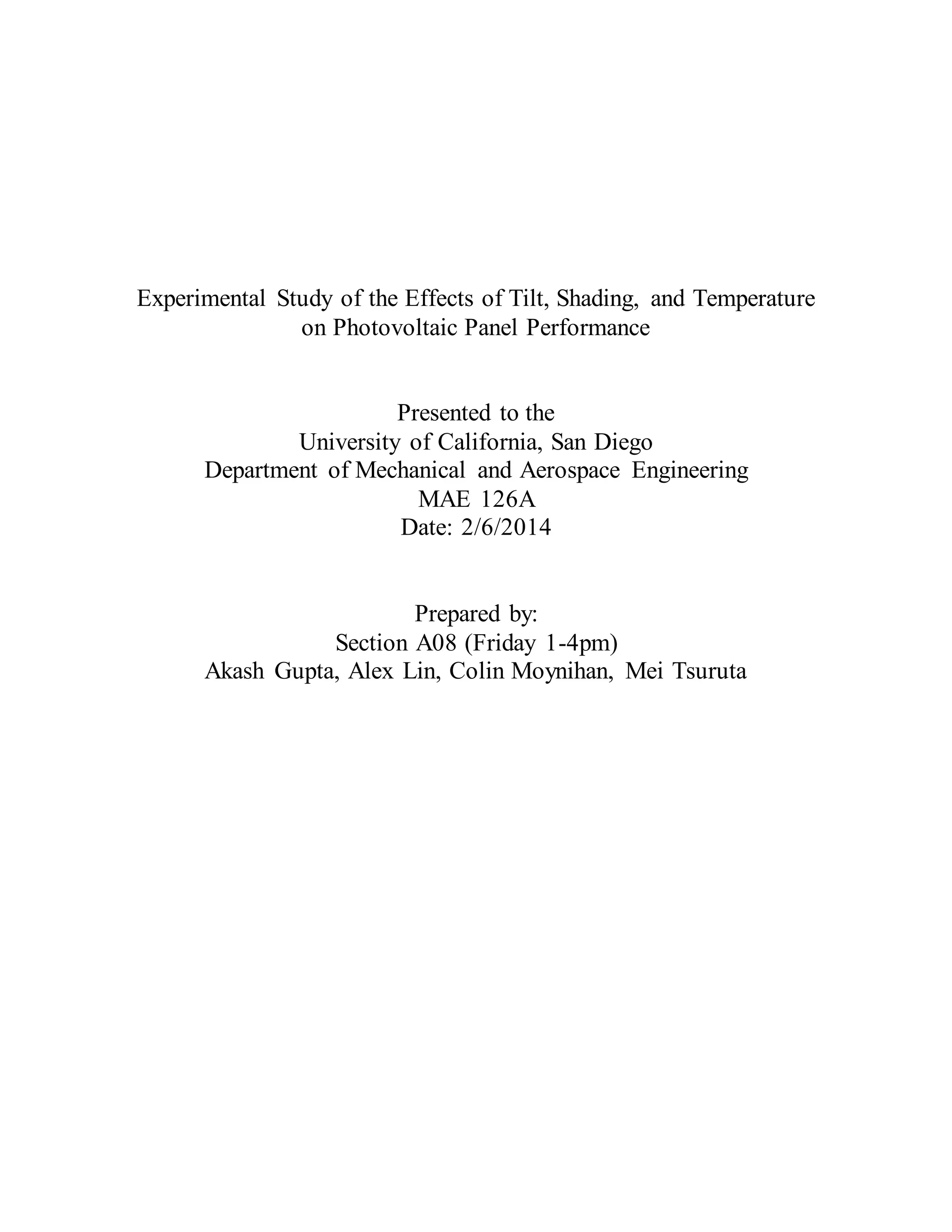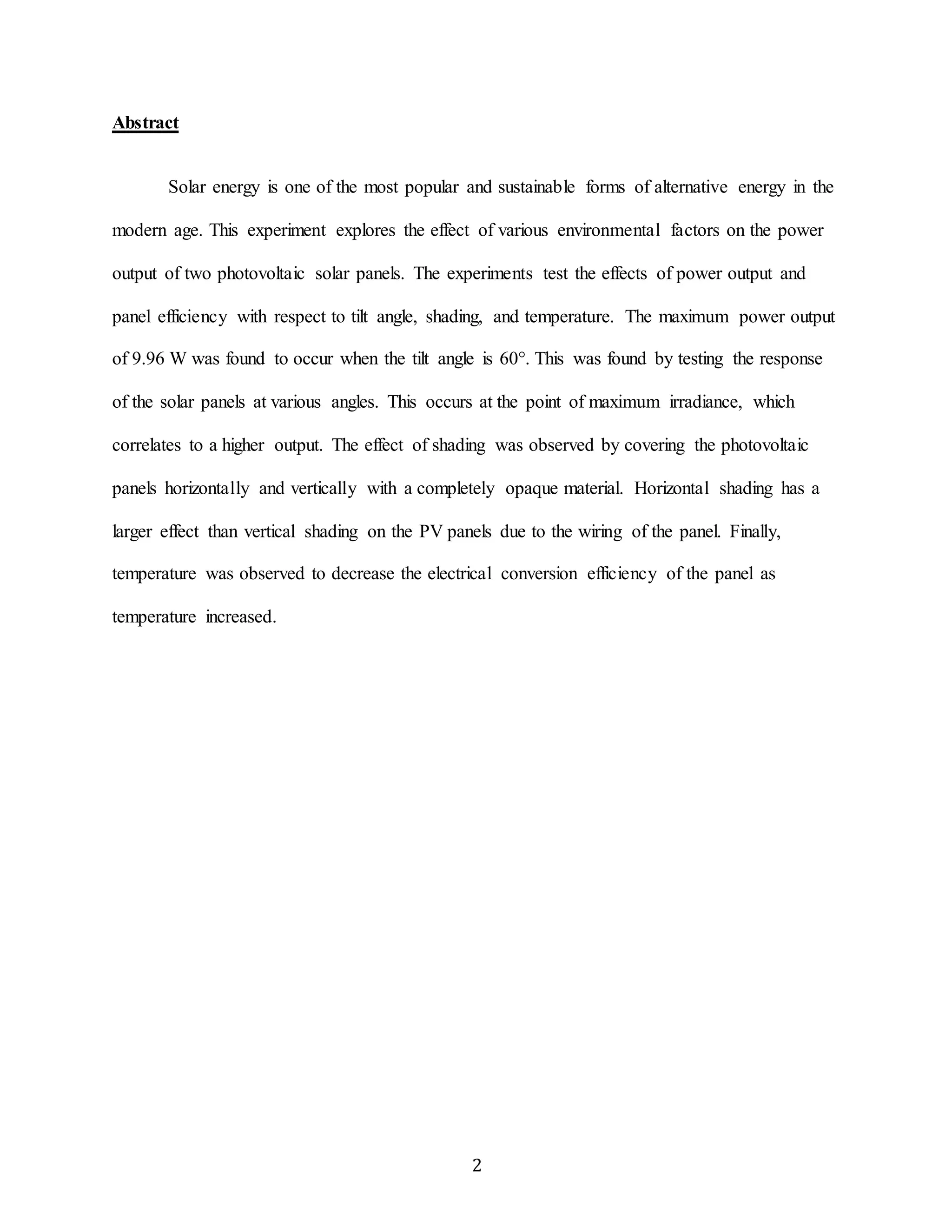 This study investigates the impact of tilt angle, shading, and temperature on the performance of photovoltaic solar panels. Key findings include the optimal tilt angle for maximum power output being 60°, a greater negative effect of horizontal shading compared to vertical shading, and increased temperature leading to lower electrical conversion efficiency. The methodology involved extensive experimental setups and the use of various measurement tools to assess the power output and efficiency under different conditions.