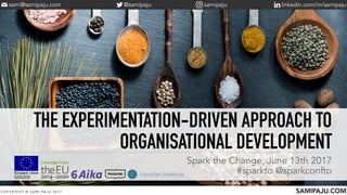 The document discusses the experimentation-driven approach to organisational development. It argues that organizations should be viewed as complex adaptive systems and managed accordingly through an approach focused on experimentation. Experimentation is presented as a tool to manage uncertainty in complex domains where outcomes are unpredictable. The key aspects of experimentation discussed include developing hypotheses to test, designing prototypes and experiments, and reflecting on results to generate new knowledge and inform next steps.