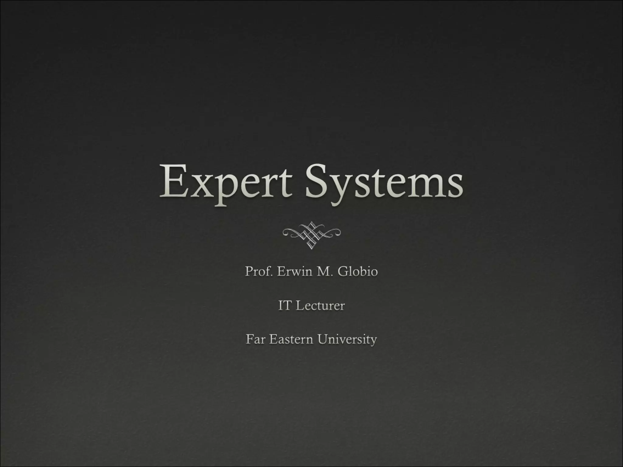 The document outlines expert systems, including their definition, major components, inference techniques, and advantages/disadvantages. An expert system uses human knowledge to solve problems that normally require human expertise by embodying expertise as rules within a computer system. It consists of a knowledge base, working storage, inference engine, and user interface.
