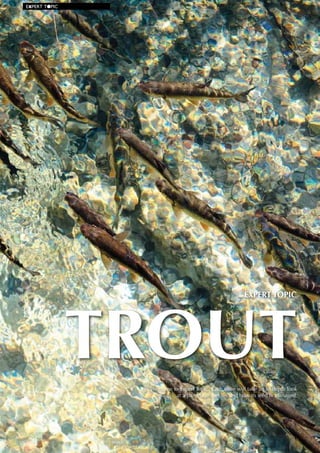 The document discusses the global production and significance of rainbow trout aquaculture, highlighting major producing countries such as Iran, Germany, Australia, Norway, and France. It details the historical context, farming techniques, production statistics, and economic contributions of trout farming in these regions. Additionally, the document emphasizes conservation efforts, recreational activities linked to trout fishing, and the industry's adaptation to environmental challenges.