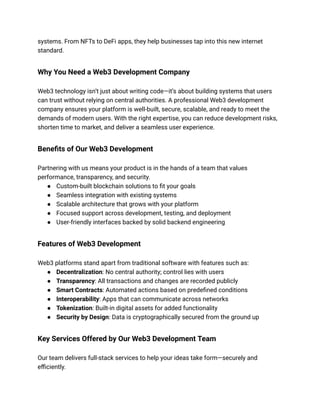 systems. From NFTsto DeFi apps, they help businesses tap into this new internet