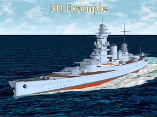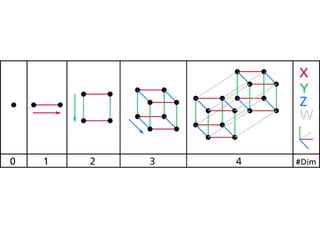The document discusses the history and development of 2D, 3D, and 4D computer graphics. It notes that 2D graphics originated in the 1950s based on vector graphics and were later replaced by raster graphics. Major developments included PostScript and X Window System. The document also briefly mentions that 3D projections have been used to visualize higher dimensions like tesseracts in 4D space. 4DX technology was first launched in 2009 in South Korea and involved enhancing movies with environmental effects to simulate dimensions beyond standard viewing.