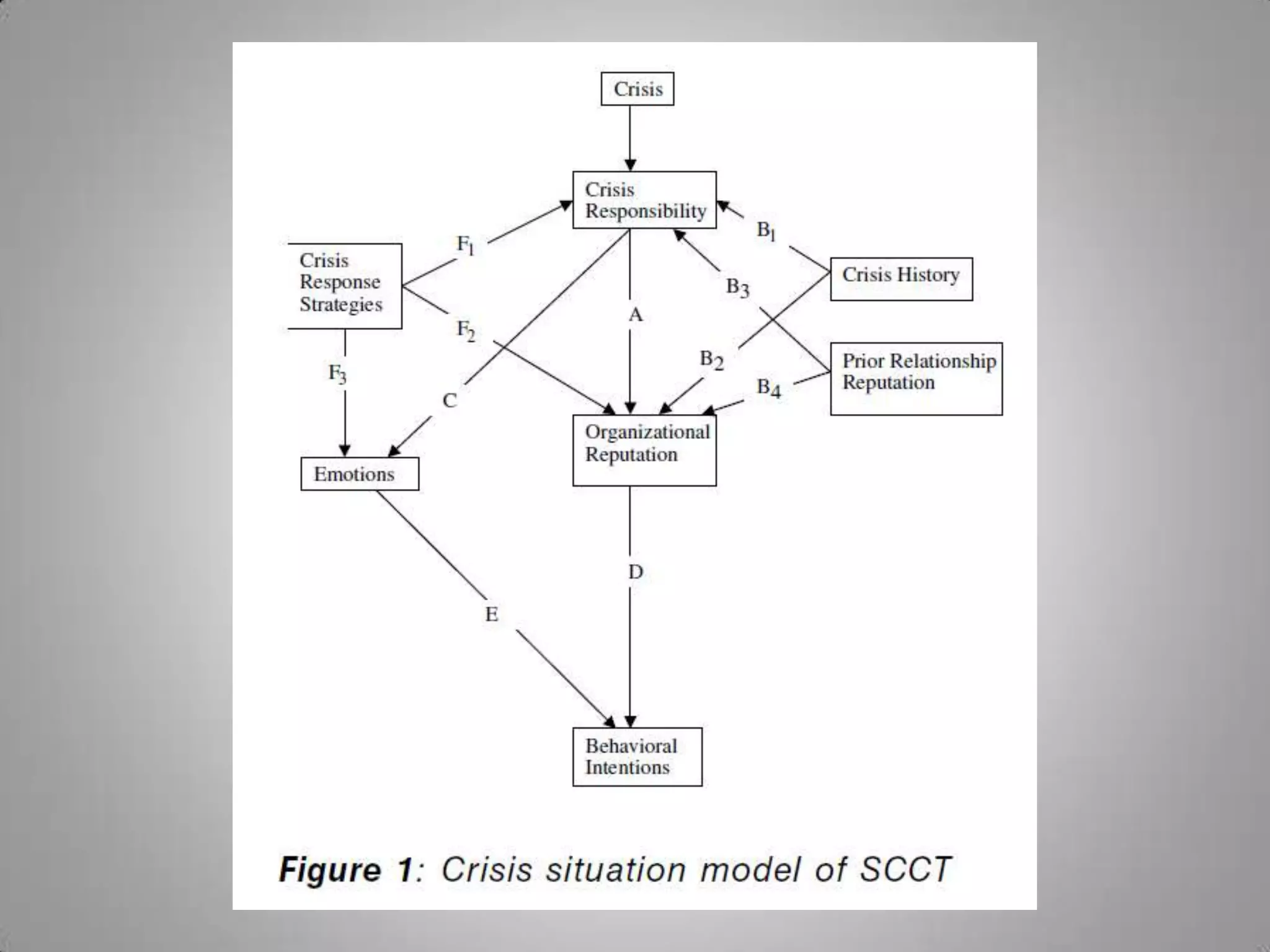This document summarizes Situational Crisis Communication Theory (SCCT), which provides guidance on managing reputation during a crisis. SCCT evolved from attribution theory and focuses on shaping attributions of crisis responsibility. It categorizes crises on a continuum from victim to preventable based on perceived responsibility. SCCT recommends response strategies matched to the crisis type and reputational threat. Research tests SCCT assumptions and relationships between crisis responsibility, emotions like anger, and outcomes like negative word-of-mouth. Findings show anger mediates these relationships, demonstrating a "Negative Communication Dynamic." Future research areas are identified to further advance SCCT.