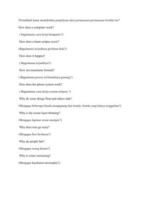 Pernahkah kamu memikirkanpenjelasan dari pertanyaan-pertanyaan berikut ini?