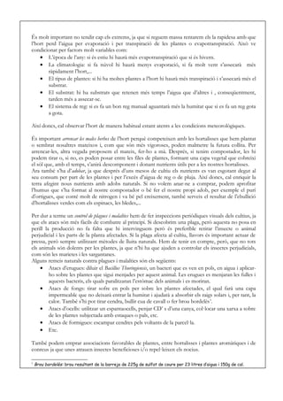 • El sistema de reg: si es fa un bon reg manual aguantarà més la humitat que si es fa un reg gota