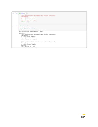 The document outlines the educational course material for exploratory analytics in Python, emphasizing that it is for instructional purposes only and should not be considered professional advice. It includes a comprehensive introduction to Python programming, covering its history, data types, operators, expressions, and various Python libraries such as NumPy and Pandas. Additionally, it provides structured content for learning Python, including multiple mini projects to reinforce the concepts discussed.
