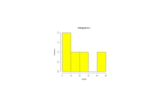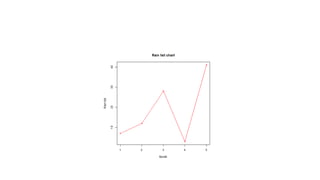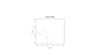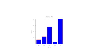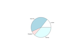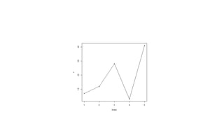 The document provides an overview of exploratory data analysis in R, focusing on the distinction between categorical and continuous variables, and how to handle both types within R using factors and numeric data. It explains different visualization techniques such as pie charts, bar charts, boxplots, histograms, line graphs, and scatterplots, detailing their syntax and parameters for effective data representation. Additionally, it addresses handling missing values in datasets, showcasing methods to test for, recode, and exclude missing data.