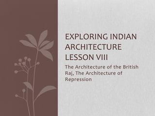 The architecture of the British Raj period in India was designed to intimidate and assert dominance over the local Indian population. Gothic and neo-Gothic styles were used as they conveyed a sense of being European, Christian, and technologically advanced. Some buildings, like the Victoria Terminus train station in Mumbai, were fantastical designs meant to overwhelm Indian culture. However, some Raj buildings incorporated some Indian elements. The British settlements in places like Shimla featured extremely grandiose buildings that seem out of place. Modern Indian views on preserving this architectural legacy are mixed, with opinions on both restoring and removing such colonial-era structures.