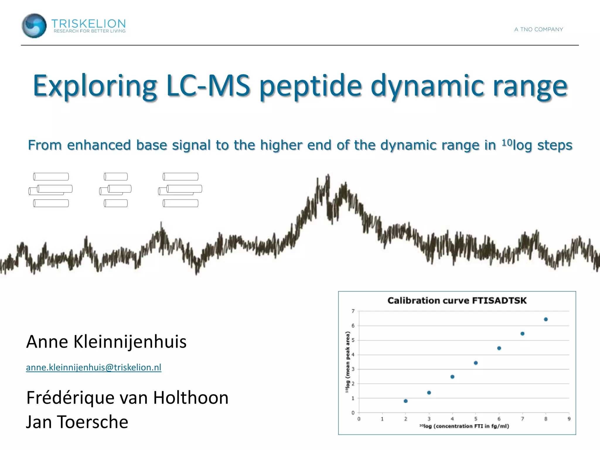 The study investigates the enhancement of analyte signals in LC-MS by utilizing a stable isotope labeled internal standard (SIL IS) for the peptide ftisadtsk. Results show that the addition of the SIL IS significantly improves base signal and precision at lower concentrations, maintaining a linear dynamic range of at least six orders of magnitude. The findings suggest that optimal experimental conditions and the presence of SIL IS can mitigate factors that typically degrade analytical performance.