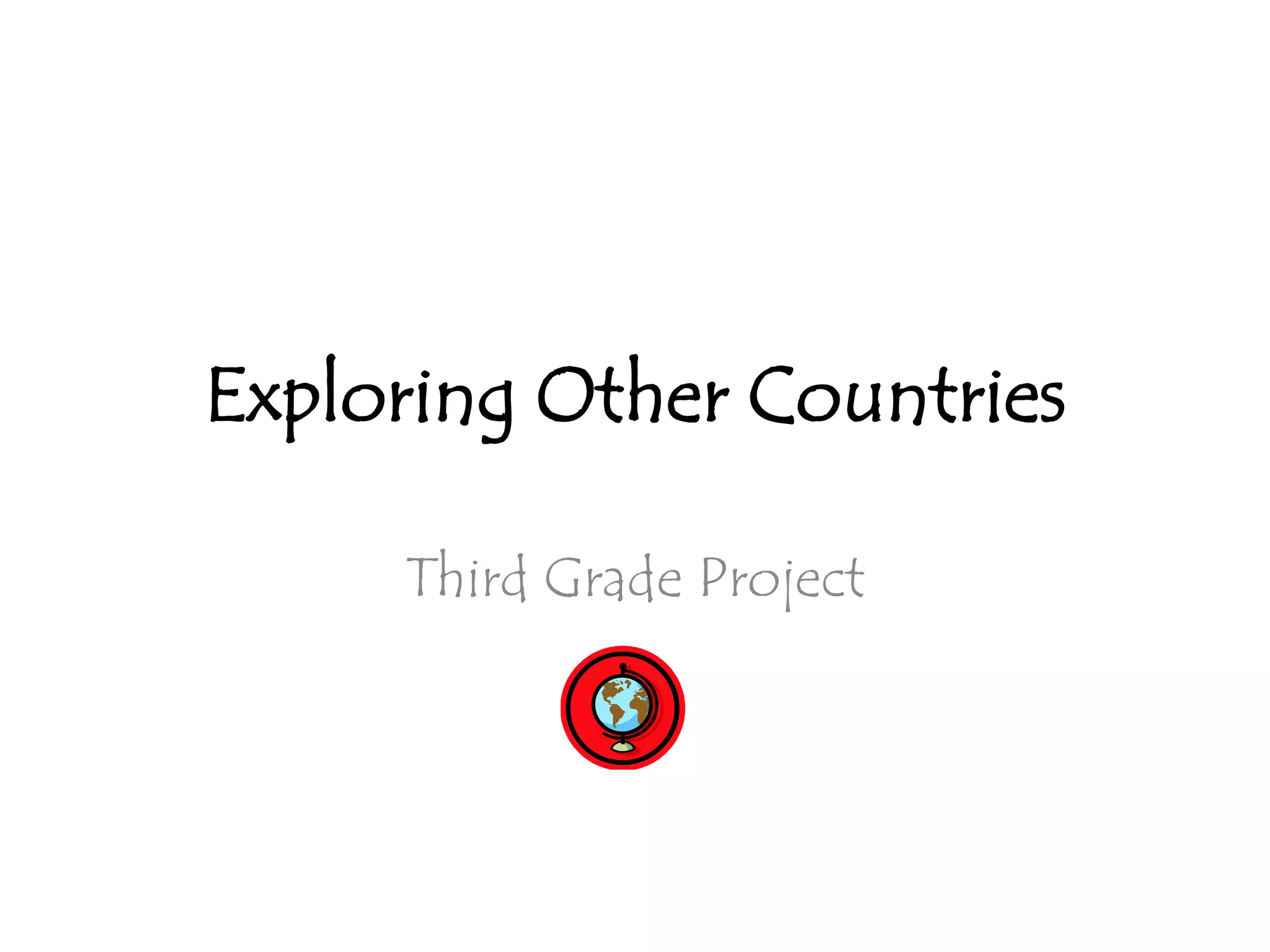 Third grade students were assigned a project to research and learn about other countries. Each classroom voted on a country to study, such as Australia, China, France, and Germany. The students then researched topics like food, transportation, housing, and education about their selected country using books, the internet, and Google Drive. They collaborated in groups to creatively present what they learned about the country through role playing, posters, or slideshows. In December, each third grade classroom shared a 20 minute presentation on the country they had been studying.