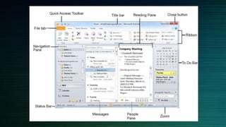 This document provides instructions for using various features in Microsoft Outlook 2010, including favorites, folders, signatures, templates, calendars, and tasks. It describes how to create and use folders to organize emails, how to create and add signatures, how to create and use templates for common emails, and how to create and assign tasks. Shortcuts for accessing these features via the ribbon or quick access toolbar are also outlined.