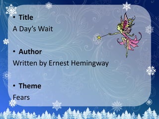 The story follows a father taking care of his 9-year-old son Schatz who has a fever of 102 degrees. Schatz becomes worried after hearing at school in France that a temperature over 44 will cause death. Throughout the day his fever does not rise above 102 and his father reassures him, but Schatz anxiously awaits death. Finally, the father explains to Schatz that the thermometer used is Fahrenheit not Celsius, so his temperature is actually normal. Relieved, Schatz's worries fade away.