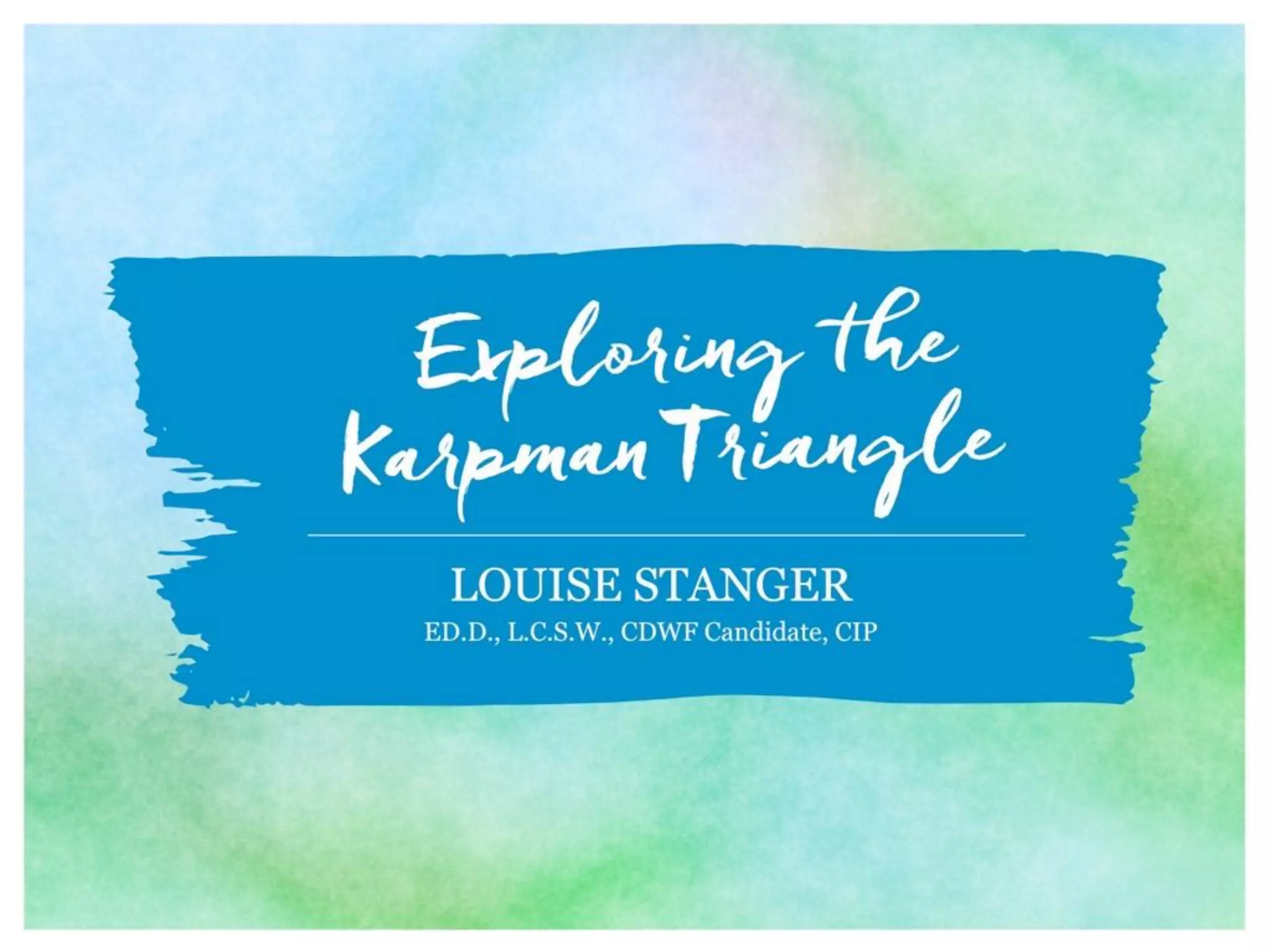 This document discusses the Karpman drama triangle model of dysfunctional relationships. The triangle consists of the roles of Victim, Rescuer, and Perpetrator. It explains how people can get stuck in these roles due to core beliefs and coping mechanisms related to shame. The document then outlines ways to move from these roles by recognizing emotions, owning one's story, and writing a new ending through tools like mindfulness, self-compassion, and setting boundaries.