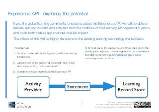 2. Explore some of the issues that you might need to face when implementing the Experience API
