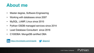 This document discusses replication and sharding in MongoDB, covering concepts like replica sets, cluster components, and the differences between vertical and horizontal scaling. Key topics include the configuration and operational details of replica sets, sharding methods, shard keys, their limitations, and considerations for deployment. It emphasizes the importance of choosing appropriate shard keys for even data distribution and outlines the model for scaling databases using MongoDB.