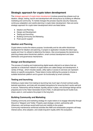 The strategic approach of crypto token development involves several key phases such as