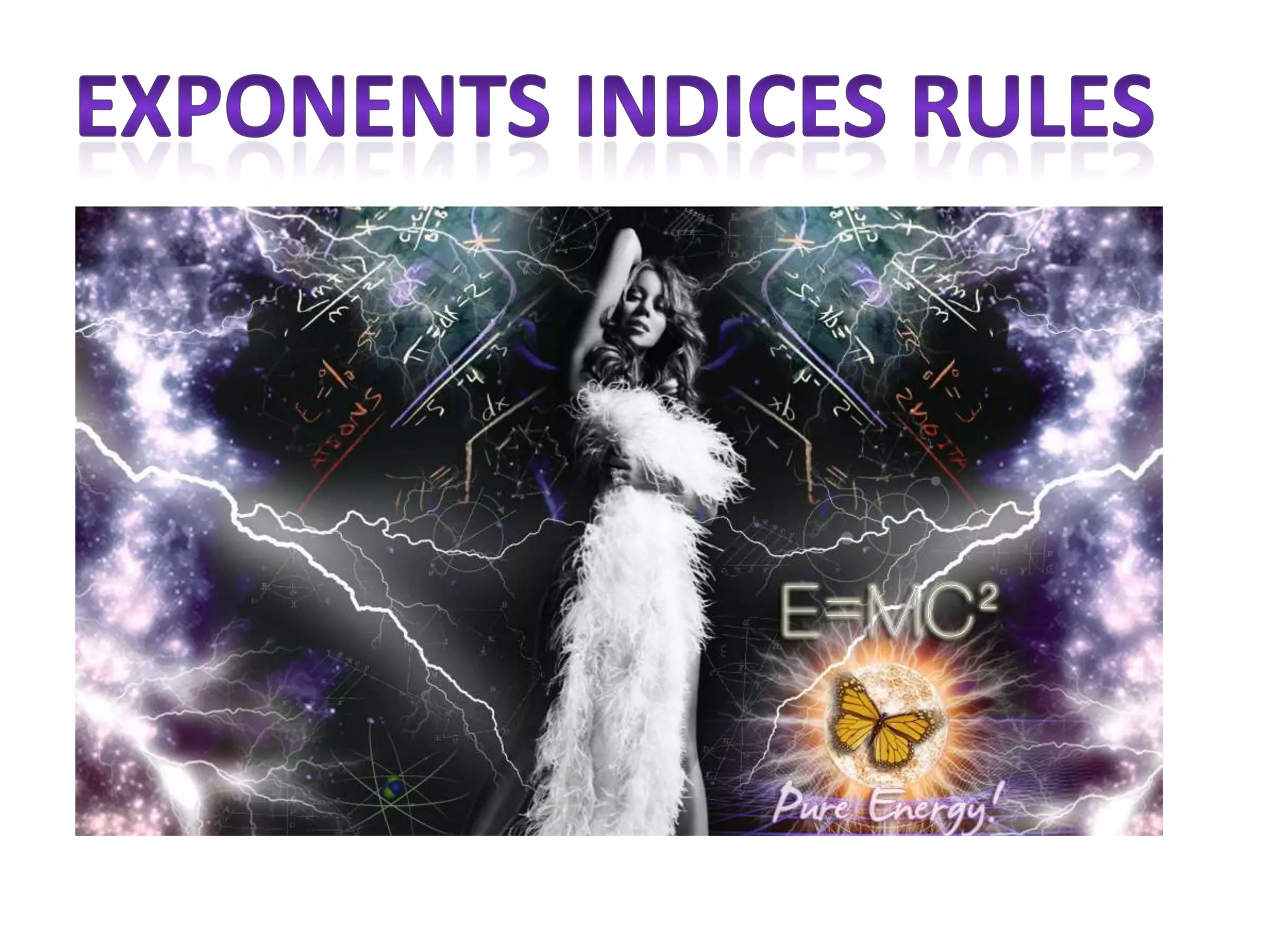 This document provides rules and examples for operations involving exponents. It explains that when bases are the same, exponents can be added or subtracted. It also discusses the power of a power rule where the outer exponent is multiplied by the inner one. There are warnings that these rules only apply when bases are the same or there is a single base inside brackets. Negative exponents are explained as reciprocals with the base moving above or below the fraction line.