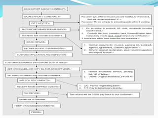 The document discusses global marketing decisions and strategies for entering foreign markets, including indirect exporting, licensing, contract manufacturing, franchising, and the challenges of international marketing. It covers factors to consider for market selection and entry mode, as well as export procedures and India's import substitution policies to encourage domestic production.