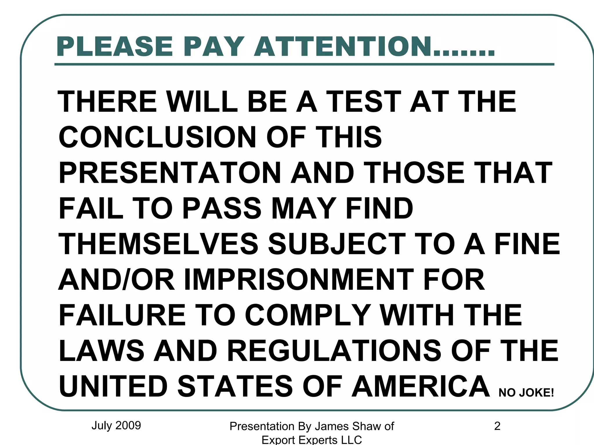 This document is a presentation by Export Experts LLC highlighting the importance of compliance with U.S. export controls and regulations. It outlines the roles of various government agencies, the potential penalties for non-compliance, and the definitions and categories of items subject to export restrictions. The presentation emphasizes the necessity for training and awareness among personnel engaged in international trade and export activities.