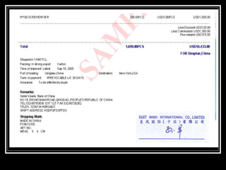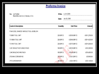 Export documentation is important for shipping goods internationally. Key documents include proforma invoices, commercial invoices, packing lists, bills of lading, and consular invoices where required. Accurate and properly completed documentation is necessary for customs clearance, obtaining payment, and transporting goods legally according to the regulations of the exporting and importing countries.