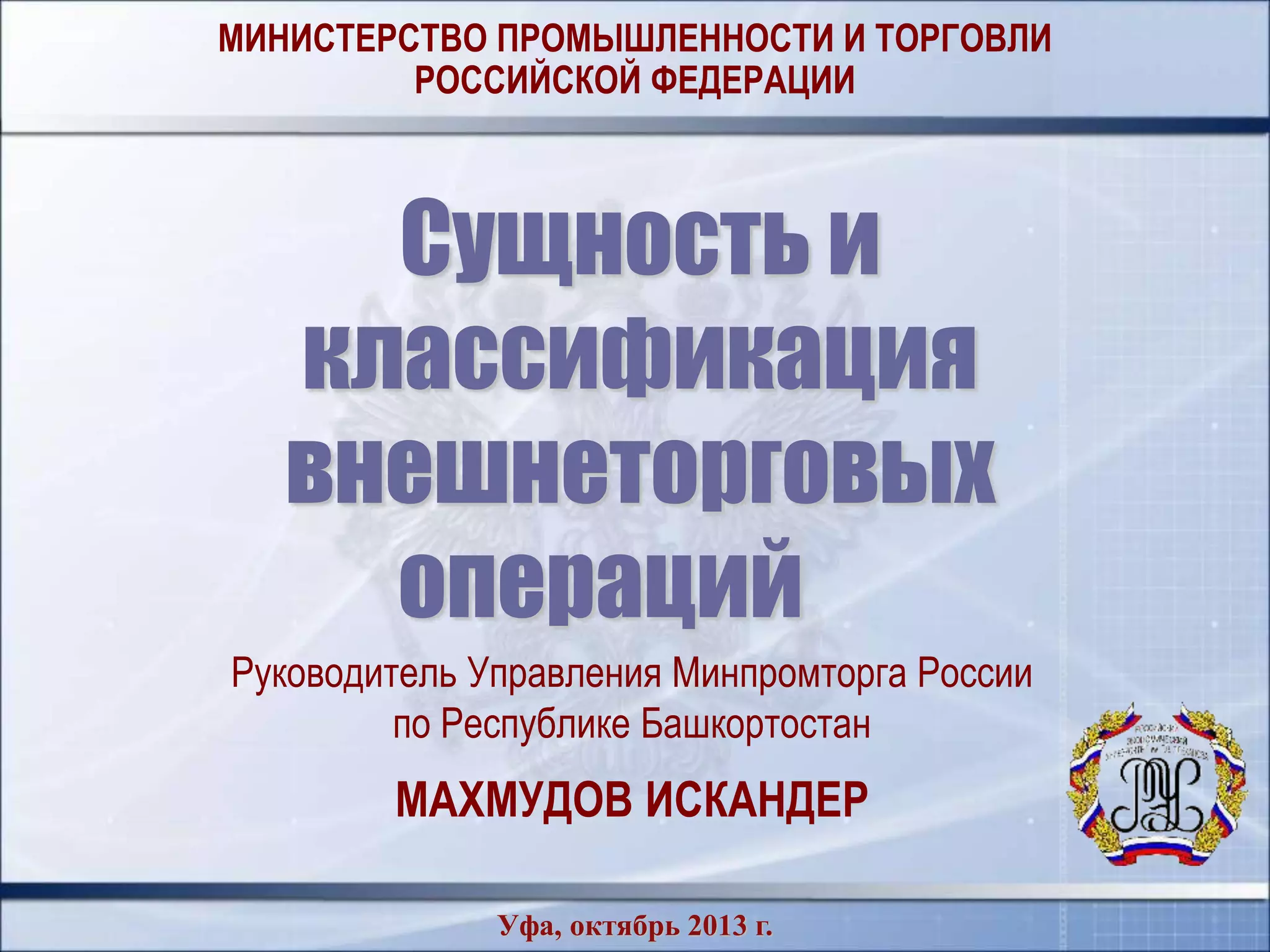 Документ содержит основные аспекты внешнеторговых операций, включая их сущность и классификацию. Рассматриваются различные виды сделок, такие как чистая купля-продажа, бартер и компенсационные операции, а также процесс заключения контрактов и исполнение обязательств. Документ также охватывает методы торговли, классификацию товаров и роль посредников в международной коммерции.