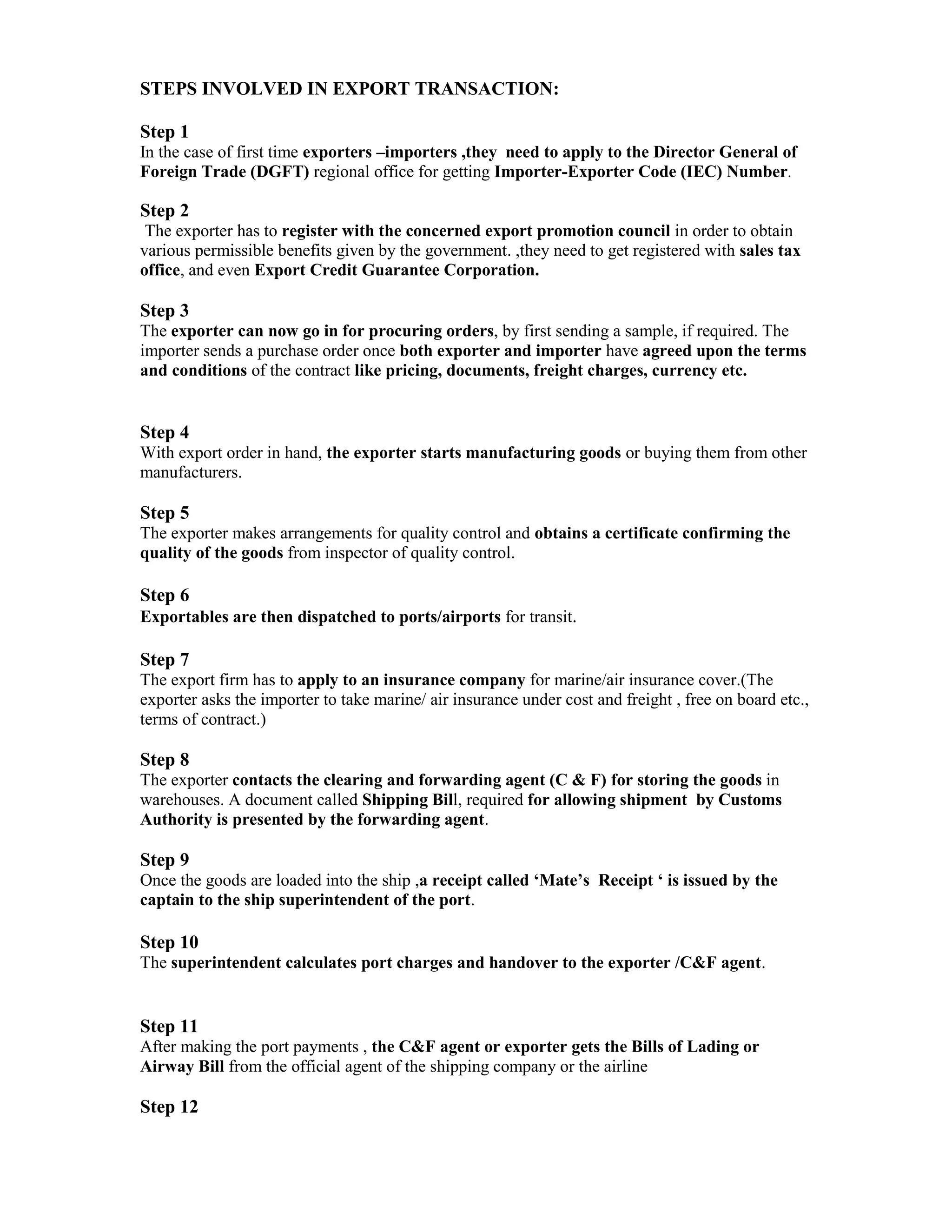 Step 2) Exporters must register with relevant export promotion councils and obtain necessary permits from other authorities.