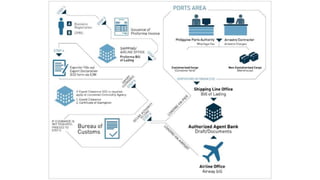 The Philippine Export Guidebook 2015 outlines the comprehensive procedures and documentation necessary for successful exports, emphasizing the importance of organizational and product readiness. It details sequential steps for business registration, order confirmation, product declaration, and acquiring required export clearances and certificates, culminating in payment methods for foreign buyers. Exporters must comply with various regulations and documentation requirements depending on the nature and destination of the goods.
