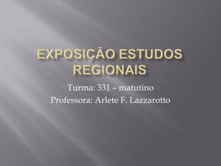 This document provides information about a class. It lists the class number as 331, indicates it meets in the morning, and names the professor as Arlete F. Lazzarotto.
