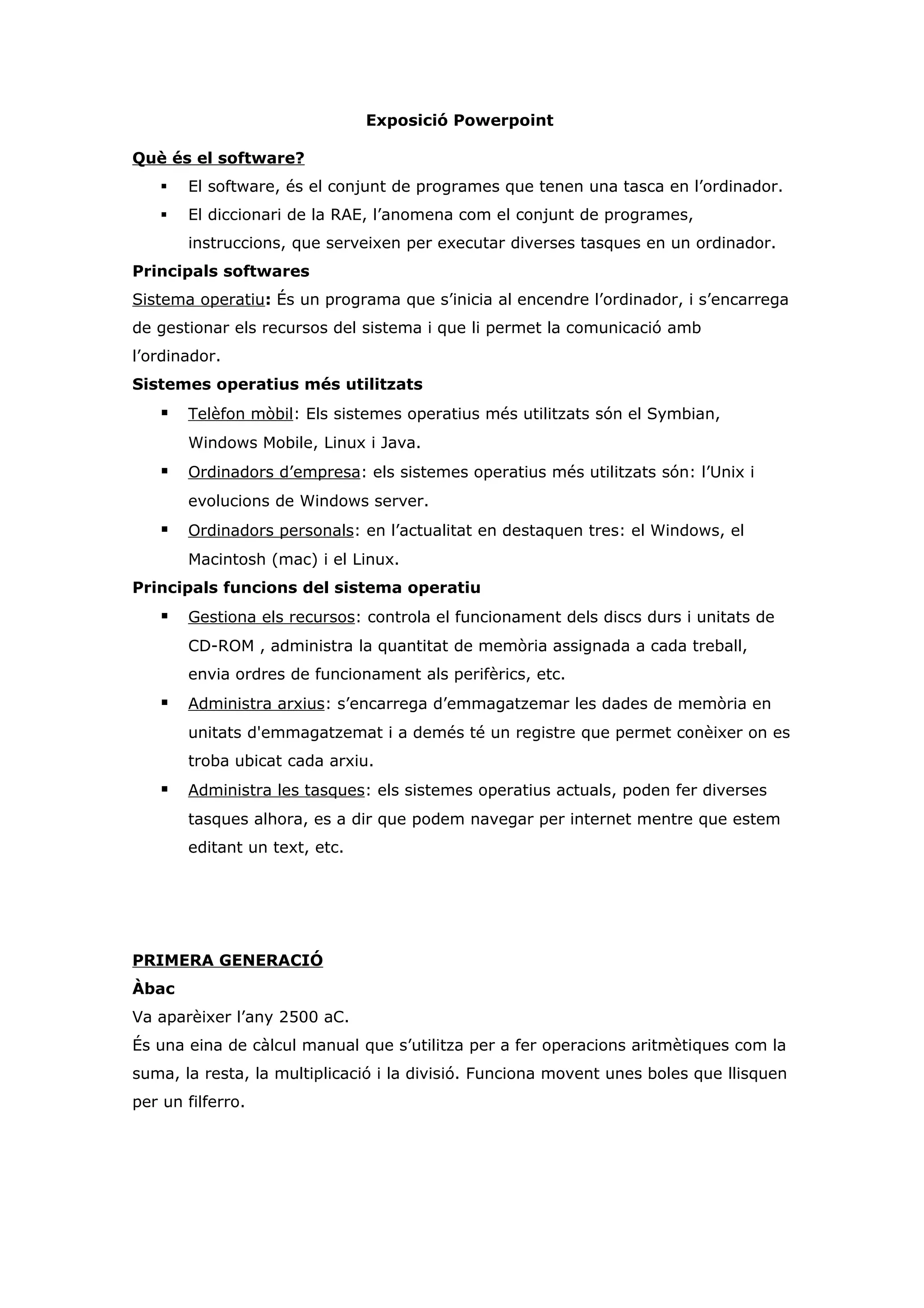Sistema operatiu: És un programa que s’inicia al encendre l’ordinador, i s’encarrega