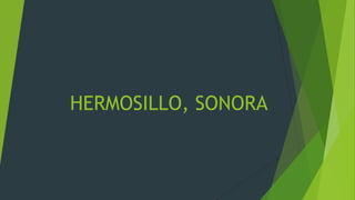 Hermosillo is the capital city of the state of Sonora, Mexico. It is located in the center of Sonora state, 270 km from the US border. According to the 2010 census, Hermosillo is the 16th largest city in Mexico. The city was originally founded in the 1700s as a Spanish presidio to restrain local indigenous tribes and protect expansion. It has a warm desert climate with an average annual temperature of 25°C. Hermosillo has a public transportation system and several museums and cultural venues, including the Museo de Sonora and Emiliana Zubeldía Theatre.