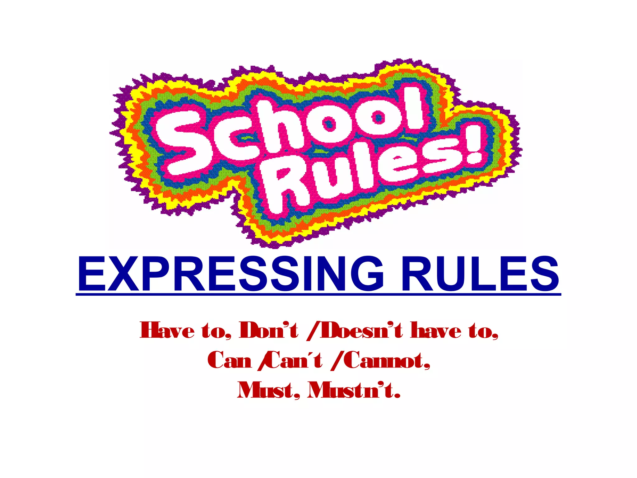 This document discusses rules for expressing obligations and permissions using modal verbs like "have to", "can", "must", and "mustn't" followed by an infinitive verb. It explains that "have to" becomes "has to" with third-person subjects like "he", "she", or "it". Examples are provided to illustrate the correct usage of these modal verbs in affirmative, negative, and question forms. Key points covered include using "don't/doesn't have to" to express lack of obligation and "can/can't" to express permission or prohibition. The document concludes by noting that "must" expresses strong obligation while "mustn't" indicates strong prohibition.