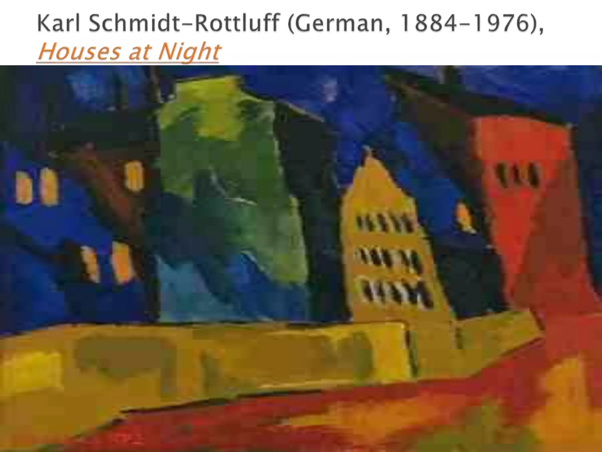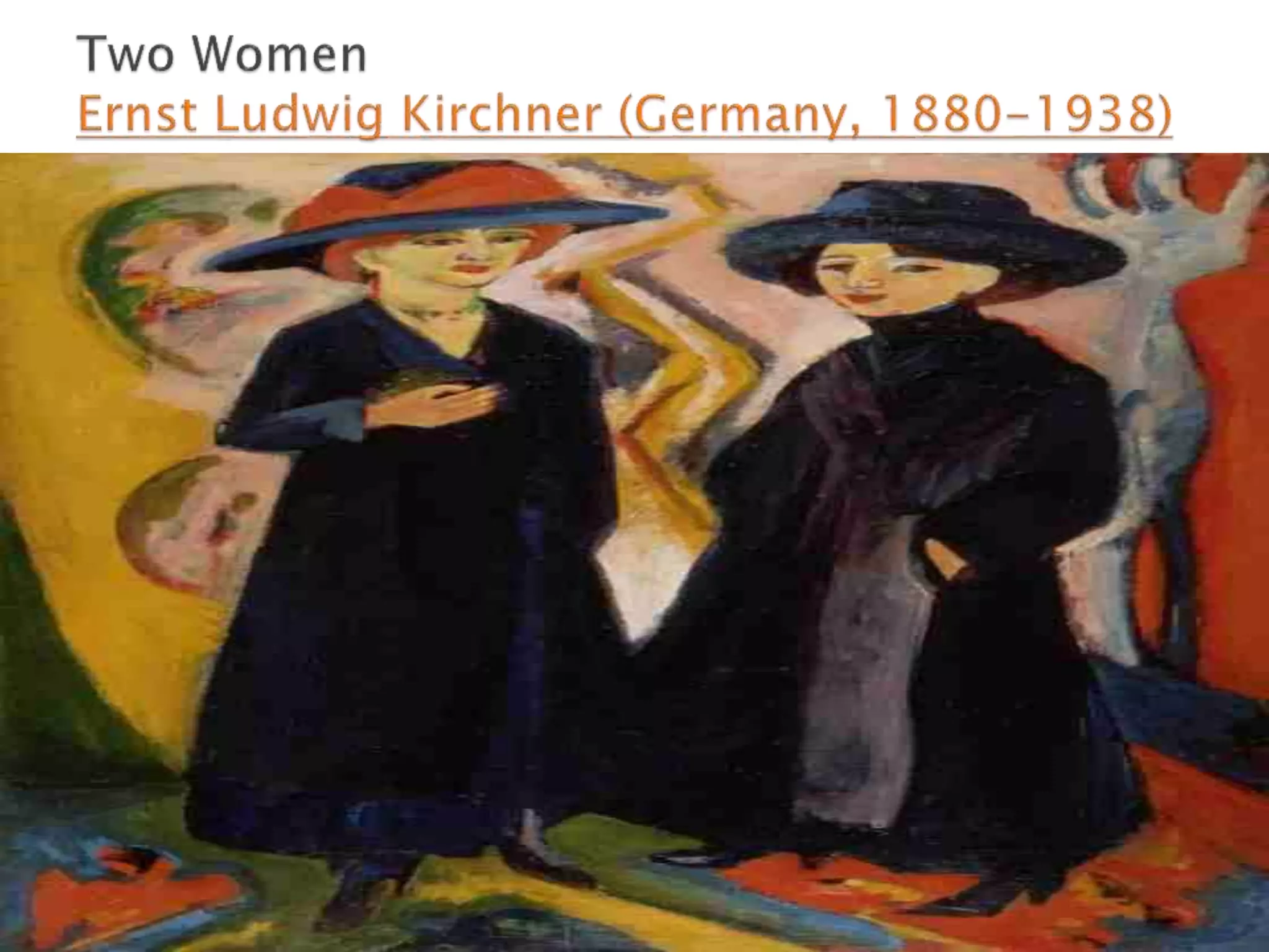 Expressionism was originally a term used by early 20th century German artists to describe their aesthetic principles of presenting the world from a subjective perspective and distorting it for emotional effect rather than depicting physical reality. Key characteristics included extreme angles, flattened forms, garish colors, and distorted views. Two major German expressionist groups were Die Brücke, known for expressive landscapes, nudes and carnival scenes using strong colors and broad forms, and Der Blaue Reiter, ranging from pure abstraction to romantic imagery to express spiritual truths. Expressionist music also aimed to express emotion and featured atonal compositions with disjunct melodies, dissonance, and extreme dynamics.