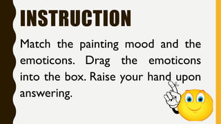 1. Expressionism was an art movement that displaced objective reality with subjective emotions, using emotional force rather than realistic images to convey the artist's emotional response to the world.