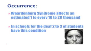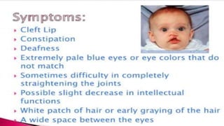 The document discusses expressivity, describing it as the degree to which trait expression varies among individuals with the same genotype. It contrasts penetrance, which measures the frequency of phenotype generation, with expressivity's focus on qualitative or quantitative variation. Examples include uniform and variable expressivity, with the latter illustrated by conditions like Waardenburg syndrome and neurofibromatosis, highlighting how genetic and environmental factors influence phenotypic outcomes.