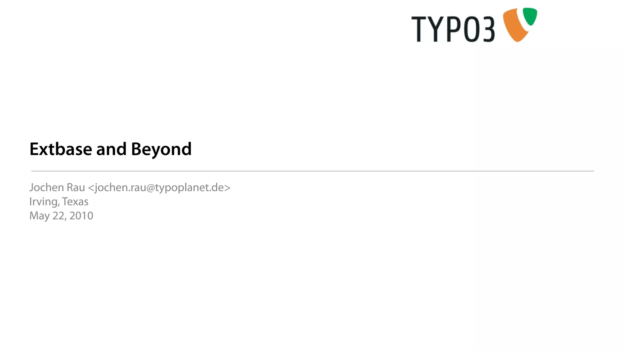 The document discusses Extbase, a framework in TYPO3 for building web applications using a model-view-controller architecture, emphasizing its development principles such as modular patterns and clean architecture. It details the transition from traditional coding practices to more structured, object-oriented methodologies, and provides examples of functionalities like content display and semantic querying. The document also touches on future developments and challenges in the context of semantic web integration and object interoperability.