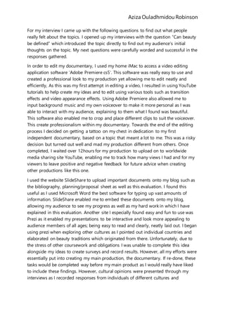 - The author created a documentary on the topic of beauty as their extended project. They faced challenges but received positive feedback on the finished documentary.