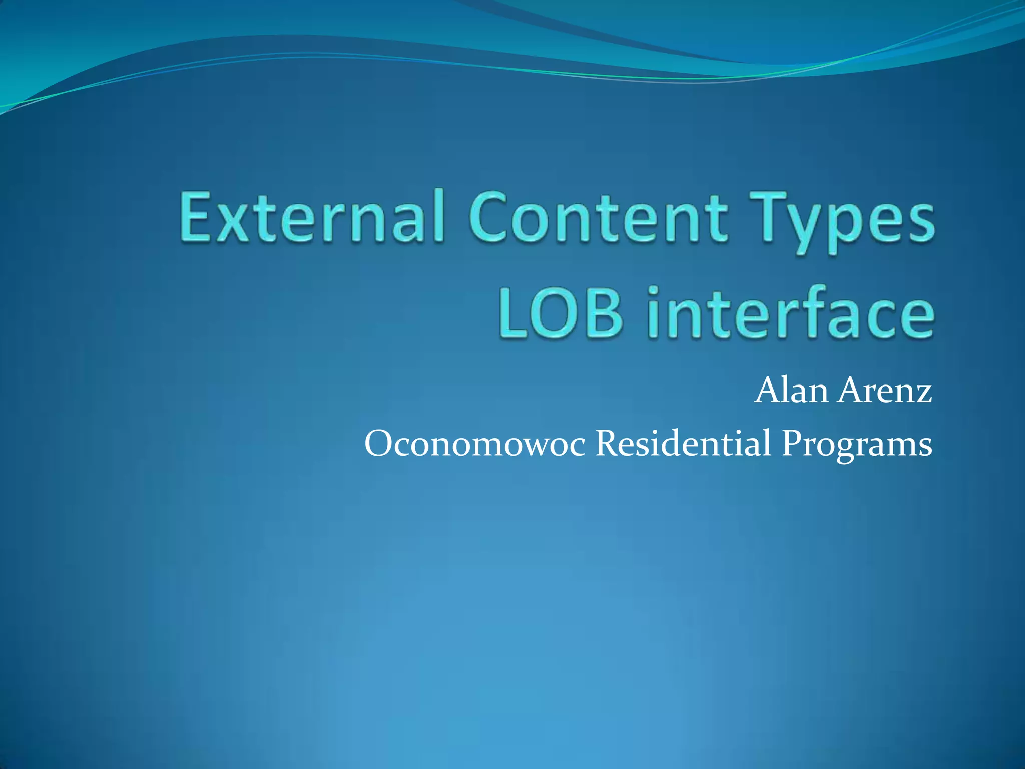 This document summarizes Alan Arenz's work using external content types and SharePoint to replace a VB application and Access database for client data management. The objectives were to allow core data to be used as metadata for documents and easily create lists, and link an employee list from HR. A proof of concept created a centralized employee phone directory linked to the HR system. Client data integration is underway but challenges remain in merging multiple data sources. Lessons learned include security configuration, content type deployment, InfoPath form limitations, and performance of external content types. The book "Enterprise Application Development in SharePoint 2010" by IRA Fuchs is recommended as a guide.