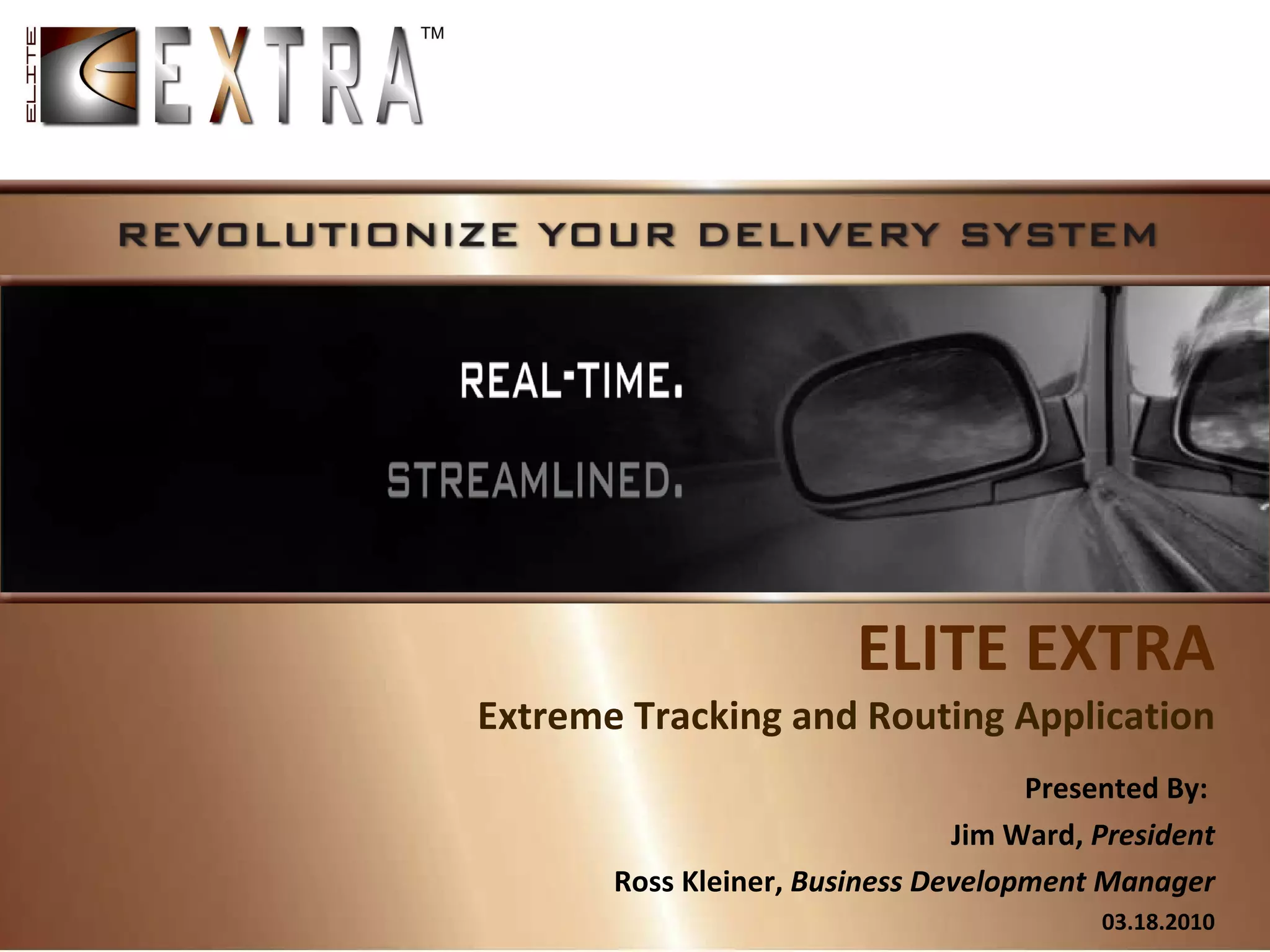 The document presents a tracking and routing application developed by Jim Ward and Ross Kleiner aimed at enhancing profitability for automotive dealerships through efficient management of parts and accessories. It outlines the potential savings in operating costs, improved customer service with real-time access to parts information, and the benefits of integrating with existing systems. The application features include automated routing, GPS tracking, and exceptional customer support, emphasizing a notable return on investment for users.