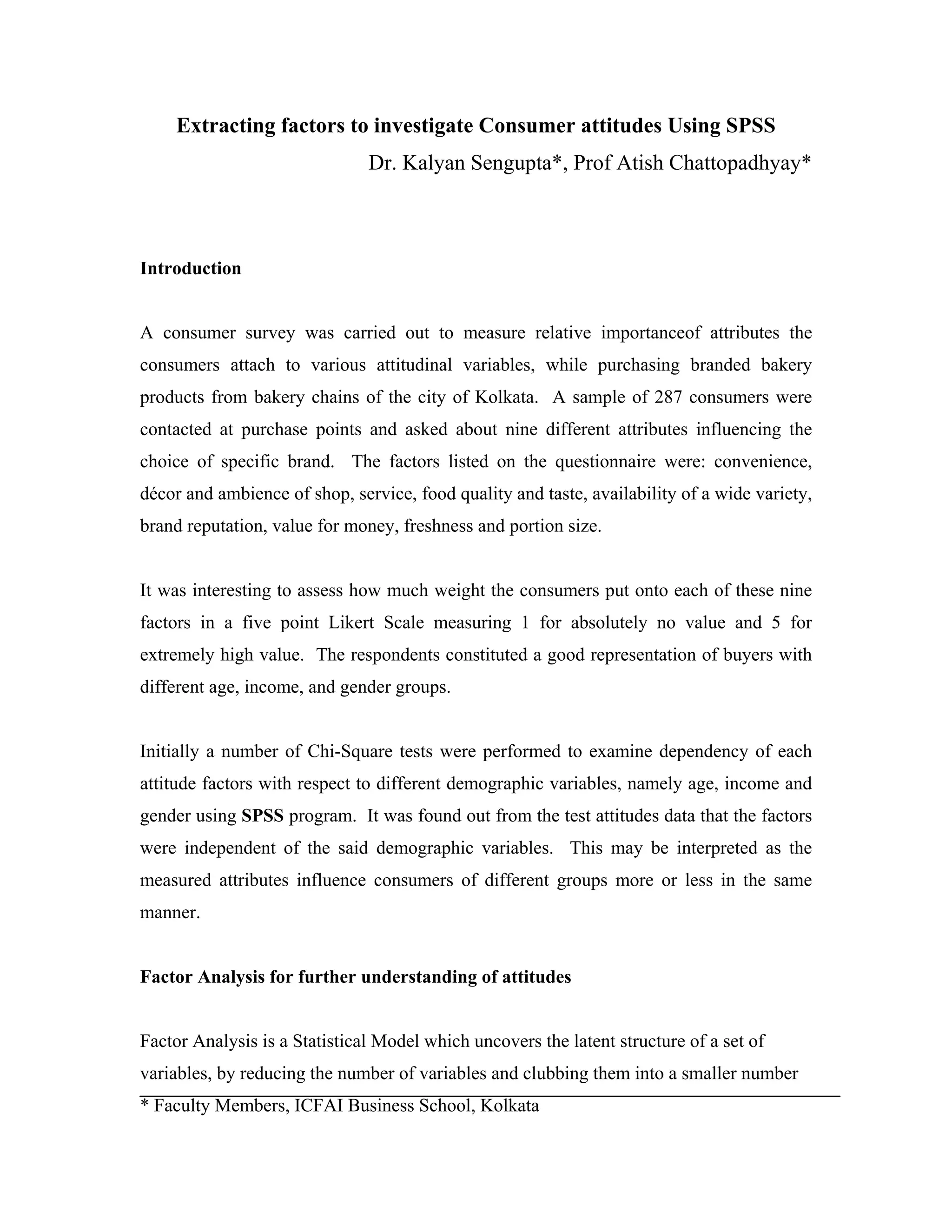 1) A survey was conducted of 287 consumers in Kolkata to understand the importance of 9 attributes when purchasing bakery products from chains.