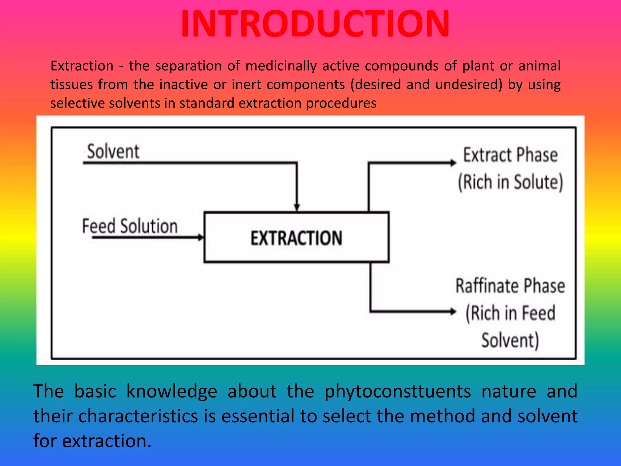 This document discusses various extraction methods used to separate medicinally active compounds from plant materials. It begins with an introduction on selecting extraction methods based on compound characteristics and solvent properties. Several conventional methods are described in detail, including maceration, infusion, Soxhlet extraction, and hydrodistillation. Non-conventional methods like ultrasound-assisted extraction and microwave-assisted extraction are also summarized. The document concludes by noting that the appropriate extraction method depends on factors like the target compound and plant material properties.