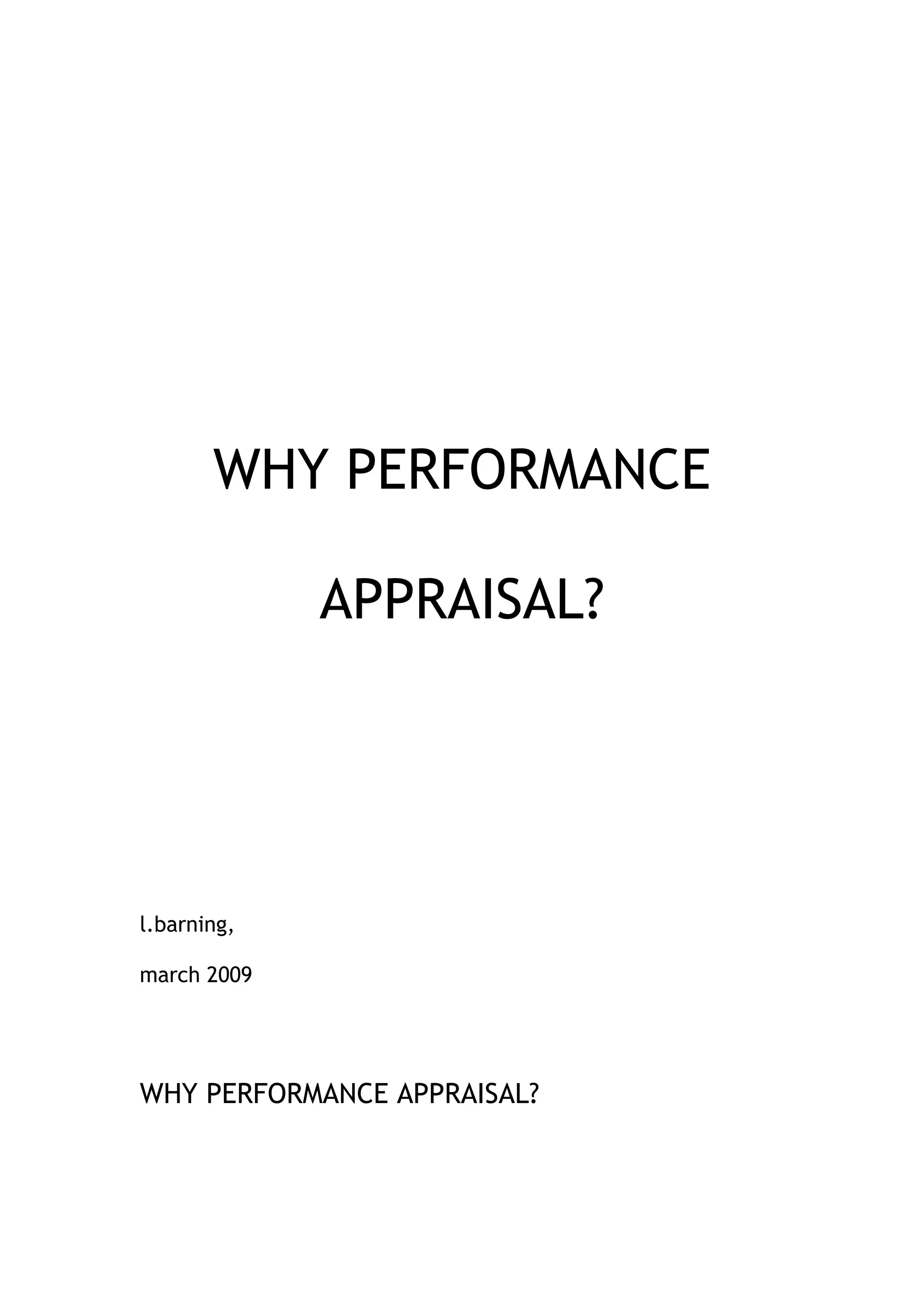 Performance appraisals are often resented by both managers and subordinates. Managers dislike criticizing subordinates and making judgments about personal worth, while subordinates feel their fate is being decided by those who lack expertise. However, performance appraisals are necessary to ensure employees are acting in the organization's best interests and meeting productivity standards. When done effectively, with commitment from top management and proper training, performance appraisals can motivate employees, improve productivity, and help organizations make strategic decisions. However, many existing performance appraisal systems are poorly designed and do not provide appropriate data for human resource decisions.