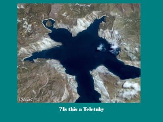 The document presents a collection of extraordinary photos that appear to show faces or figures in unusual natural phenomena or structures like icebergs, mountains, and ruins. Some photos appear to depict faces on astronomical objects, animals in aerial photos, and even alien or supernatural beings. The authenticity of the photos cannot be easily explained, with some members of the scientific community hypothesizing the involvement of extraterrestrial civilizations in formations like the giant human face depicted on a mountain near Machu Picchu.
