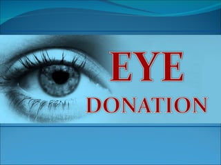 1. The document discusses the importance of eye care and eye donation. It emphasizes that eyes are a precious gift and should be protected from accidents and diseases to preserve sight.